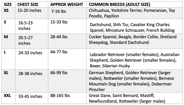 | XL | German Shepherd, Golden Retriever (larger males), Rottweiler (smaller females), Bernese Mountain Dog (smaller females), Doberman Pinscher |
